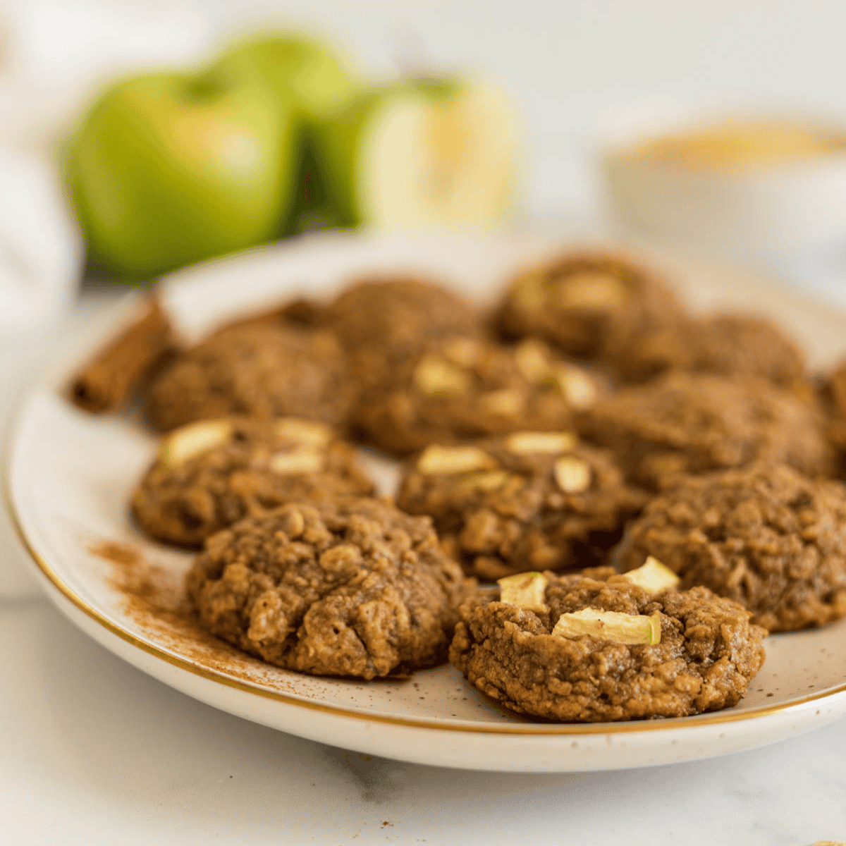- Low in sugar: These cookies are mostly sweetened naturally with applesauce and chopped apples, but I also included 1/4 cup of maple syrup. Feel free to omit the maple syrup if you’d like, just know that the cookies will be very mildly sweet-tasting.